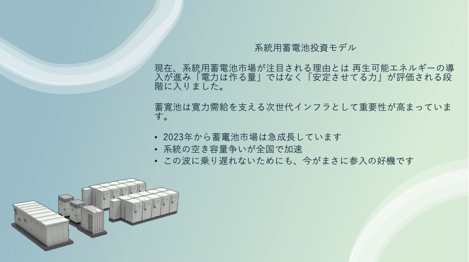 【GX 投資】5.83 億円系統⽤蓄電池事業|⾼利回り・事業推進層向け